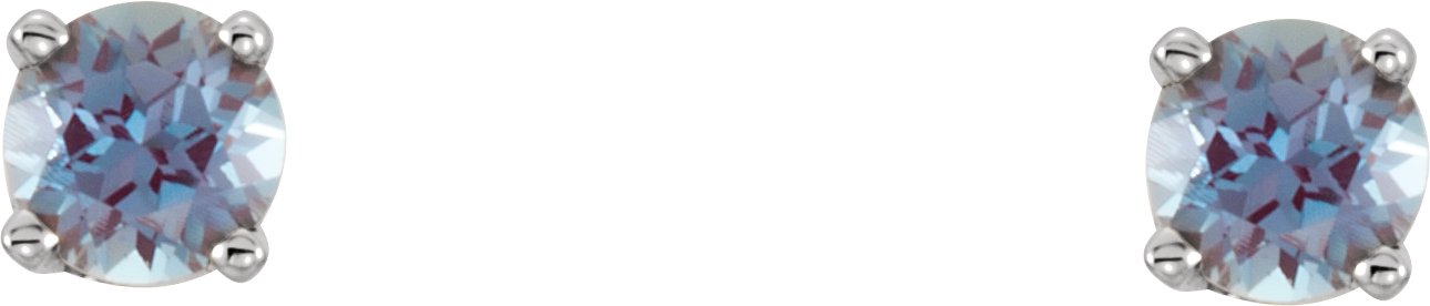 651643 / Sterling Silver / Set / Round / Imitation Alexandrite / Pair / 3 Mm / Threaded / Threaded Backs Included / 4-Prong / Polished / Youth Earrings With Backs
